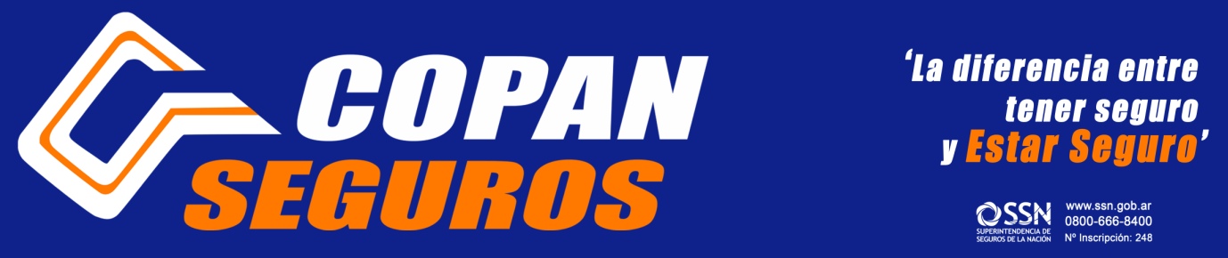Ser Productor Asesor de Seguros, con más de 30 años de experiencia en el mercado asegurador, me ha dado la gran posibilidad de conocer mucha gente, de distintos ámbitos, que hoy son mis clientes, los cuales me han hecho crecer profesionalmente, capacitándome de manera constante, para dar el mejor servicio, el mejor asesoramiento y la mejor atención a los asegurados, que confían en mí, año tras año, con la confianza de siempre, te invito a que te sumes a nuestra prestigiosa cartera de clientes, donde encontraras el EQUILIBRIO justo, entre PRECIO, y la mejor CALIDAD, respaldado en forma exclusiva en la zona, por una Aseguradora de primer nivel, como es COPAN COOP. DE SEGUROS LTDA, dentro del Mercado Asegurador